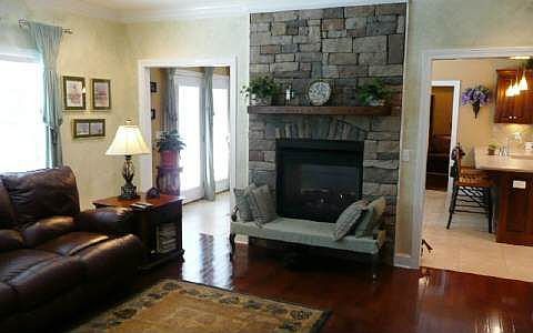 AN ELEGANT HOME WHERE YOU CAN BE PROUD TO ENTERTAIN FAMILY AND FRIENDS - This custom home boasts 2 masters on the main, a well -appointed kitchen w/stainless appliances, 2 dishwashers, warming drawer, tumbled marble backsplash & 2-sided fireplace. Other features include, trey ceilings, formal dining room, home office, theater room with 100" screen, AV & projector hook-ups, laundry room, fantastic tiled walk-around shower, jetted tub, 2 car upper level garage & 1 car lower level garage or boat storage, and concrete drive.