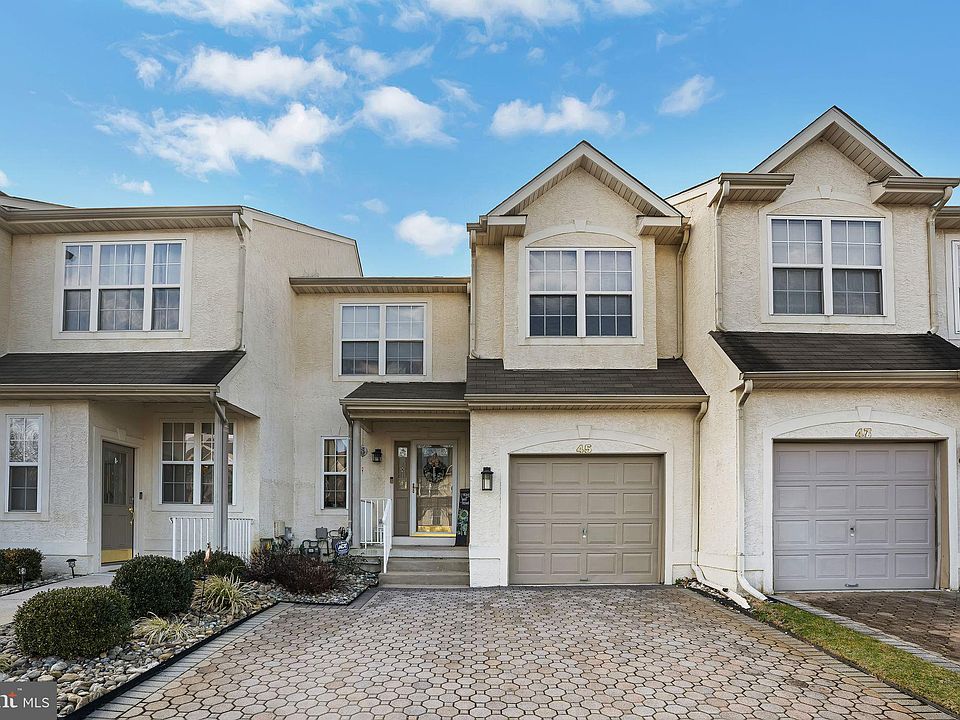 The Sellers have received multiple offers and have requested no further showings. Situated within the coveted Heron Pointe Estates of Marlton, NJ, this inviting townhome presents a blend of comfort and elegance. Boasting nearly 1900 square feet of living space, complemented by a spacious finished basement, this residence exudes warmth and functionality from the moment you step inside. Upon entry, a welcoming foyer sets the tone, adorned with gleaming hardwood floors that span the first floor. To the left, a convenient powder room and expansive hall closet offer practicality and storage solutions. Continuing through, the dining area seamlessly transitions into the kitchen and living room, where a cozy gas fireplace serves as the focal point. The kitchen, outfitted with stainless steel appliances, granite countertops, ample cabinetry, a pantry closet, and ceramic tile floors is a cook’s delight. There is also plenty of room for a table. A sliding door leads from the kitchen to a trex deck, perfect for outdoor entertaining and relaxation. The second floor reveals a spacious primary bedroom with a vaulted ceiling, hardwood floors, a walk-in closet, and an adjoining bathroom. The primary bathroom boasts luxurious amenities, including a double vanity sink, jacuzzi soaking tub, and stall shower, creating a tranquil sanctuary. Two additional bedrooms and a full bathroom provide comfort and versatility for family members or guests, while a conveniently located laundry room simplifies household chores. The finished basement, freshly painted offers additional living space and includes a half bath and ample storage options, catering to various lifestyle needs. Completing the package, the driveway boasts newer pavers and accommodates two cars comfortably, alongside a one-car garage. Furthermore, the community offers an underground sprinkler system and lawn maintenance making for prime easy upkeep. The location offers easy access to major highways, so getting to Philadelphia or the Jersey Shore is a breeze.
