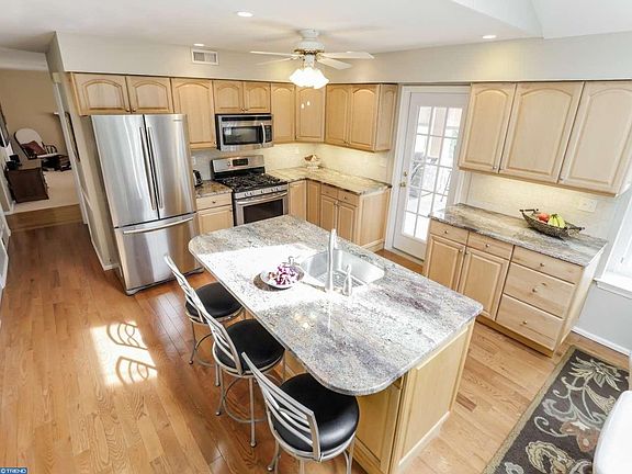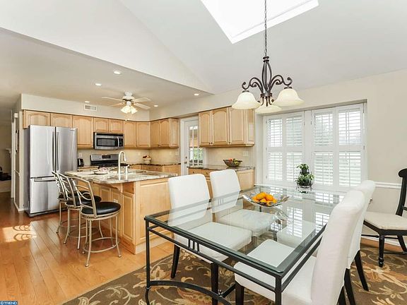 Prepare to be impressed w the spaciousness & upgrades this Maple Point home on a coveted cu-de-sac location provides! A classic brick front welcomes you into a bright Foyer w hardwood floor, crown & chair rail moldings & lrg hall closet. Formal Living Rm invites w neutral 2-tone scheme, chair rail & crown moldings, hardwood floor & double windows. Enter adjoining Family Rm through glass French doors, perfect w new neutral carpeting, brick-framed remote controlled, gas-fueled FP w white mantle, & large bay window. More moldings, hardwood floor & elegant chandelier complete the Dining Rm. The renovated Kitchen is sure to be the hub of this home w its gleaming granite counters, classic subway backsplash, raised panel natural maple cabinetry, recessed lighting & island w stool seating. Stainless appliances inc 5-burner gas stove w griddle & whisper quiet dishwasher. Hardwood floors flow into the Breakfast Rm w soaring ceiling, skylight & windows w custom plantation shutters. A French door leads to the Sun Rm w vaulted ceiling, tile floor, 4 sets of sliding glass doors, custom geometric clerestory windows & floor-to-ceiling views of the rear yard. Completing the Main Level is a reconfigured Laundry Rm w white cabinetry, Powder Rm w pedestal sink & 2 car Garage w storage cabinets. Upstairs, the 32' long Main Bedrm Suite inc a Sitting Rm, large walk-in closet, crown molding, neutral d~cor, ceiling fan/light fixture, along w spectacularly remodeled tile shower w glass tile niche, frameless, rolling shower doors w/ waterfall & hand-held fixtures. A 2-sink vanity with 9' of custom cabinetry, trendy lighting & oversized mirrors complete this classically decorated suite. The secondary 3 Bedrms are spacious & bright, w ample closet space, neutral carpet/walls. They share the Hall Bath w a classic white tile shower/tub, built-in shelving, striking black vanity w white sink top & engineered floor. A professionally finished Basement has overhead lighting, neutral carpeting & open layout. Accessed via the Sun Rm, a deck provides entertaining space while enjoying views of the level, park-like, professionally landscaped yard. Economical gas heat & central air. This freshly painted modified/expanded Vernon model within desirable Maple Point community, blue-ribbon award winning Neshaminy Schools. Ideal for commuters, this home is within minutes of multiple major commuter arteries & bridges to NJ. Nearby, you'll love the nearby public Parks, historic towns & boutique shops.
