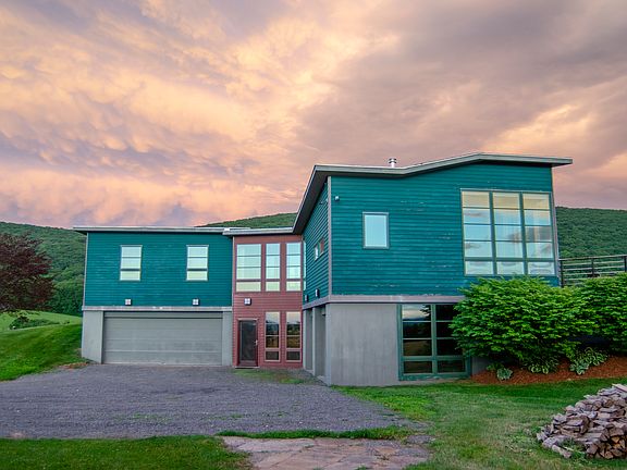 Same exceptional property with priceless views NOW BEING OFFERED WITH 2 ADDITIONAL PARCELS adding 29 acres which will assure that the views remain protected, making this a very rare opportunity. Presented in Elle Decor and other publications this unique home surrounded by rolling hills features soaring wood ceilings, custom mill-work, multiple decks, and a dramatic 20' stone fireplace. Sensitively sited, the main home's towering west-facing windows bring the dramatic beauty of mountains, fields, water, and sky streaming in. A private spring fed 2-acre pond for swimming and boating provides the perfect reflection point for glorious sunsets. Each bedroom boasts an en suite bathroom, and corner windows providing unique vantage points of the pristine countryside. A separate garage structure offers a 2nd living space, with 2 bedrooms, 2 baths, all with dramatic views. Located 30 min from Great Barrington and Hudson, and minutes from Hillsdale and Catamount, making the location pinpoint perfect.