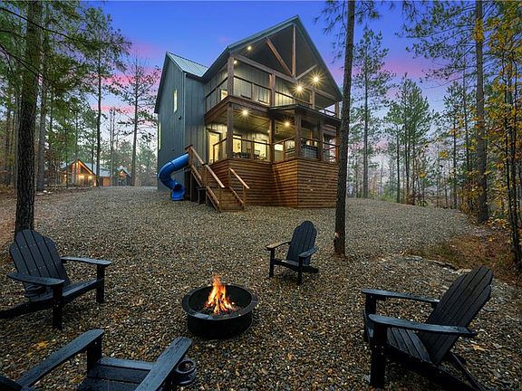Fully furnished brand new construction in a popular new development in Broken Bow, OK! Beautiful modern cabin with a slide off the back deck for kids to enjoy with a seasonal creek flowing through and sitting on a little over an acre. Two bedrooms, two and a half baths and a large loft area that can be used as a game room/bunk room leading out to the upstairs balcony. Indoor and outdoor fireplace to gather by, and large decks to enjoy the beautiful pines! Granite countertops, accent shiplap wall on back kitchen wall, sheetrock throughout cabin, accent shiplap wall in each bedroom, pine bedroom ceilings, and an accented fireplace in living room. Estimated completion date November 2022, hot tub included. The cabin is offered with a one-year builders warranty.