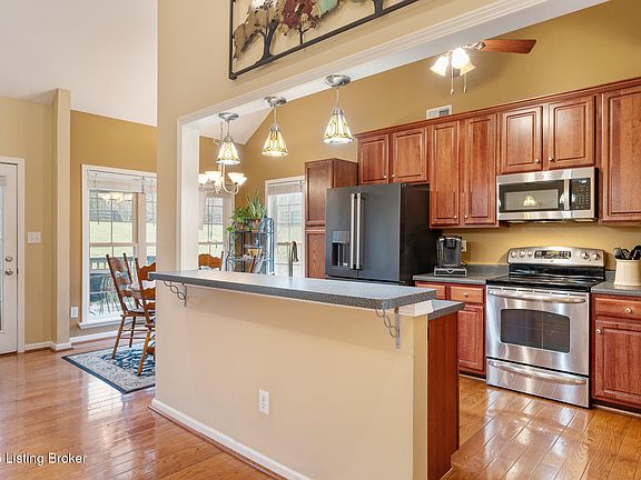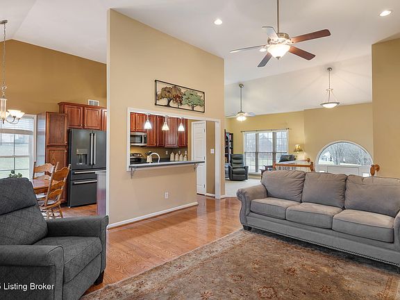 OPEN SUN 2/9 2-4 p.m. Nestled in an ideal country setting yet only 15-20 minutes from Louisville, this charming home offers the perfect blend of peaceful living and city convenience. Sitting on a beautifully maintained .77-acre lot, this property is situated at the end of a cul-de-sac and features a fenced yard, patio, and covered deck where you can relax and take in the scenic surroundings. Step inside to an inviting open floor plan with hardwood floors throughout much of the main level. A large great room features tall ceilings and a handsome fireplace and opens to a spacious kitchen featuring an abundance of cabinetry, quality stainless steel appliances, and plenty of counter space -perfect for cooking and entertaining. The living and dining areas flow seamlessly, making gatherings effortless and enjoyable. This home offers three bedrooms on the main level, including a primary suite with its own laundry area for added convenience and a large walk-in closet. Need more space? The finished basement provides additional versatility, featuring an extra room that could serve as a home office, gym, or guest space. Or there's the potential to make it a fourth bedroom, making this home ideal for those in need of extra flexibility. Outside, the spacious backyard is perfect for pets, play, or gardening, while the covered deck provides a relaxing space to enjoy the outdoors. With easy access to Louisville, this home offers the best of both worlds - peaceful country living with modern conveniences just minutes away. Sellers are purchasing a one-year HSA home warranty for the buyers at closing for peace of mind. Don't miss out on this wonderful opportunity - schedule your private showing today!