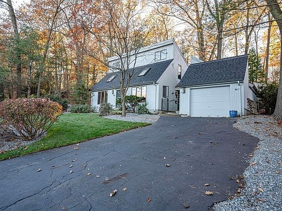 We are back on the market but BETTER than before. Interior of home freshly painted, all new flooring. Kitchen cabinets painted a beautiful white. Everything done in neutral colors ready for your decorating to your liking! New bathroom vanity and toilet. This contemporary home is distinctive, from the cathedral ceilings with skylights, to the slider off main bedroom to the huge deck and patio area. You'll find a large storage area with sliding doors above the closet in the main bedroom and there's a loft in the 2nd bedroom. A beautiful custom mural on a wall in the living room, kitchen with center island & all the appliances will stay. Open breezeway and 1 car attached garage with storage above. Beautiful landscaping with stone areas for gardens. Sod recently put down. Home and deck were professionally power-washed. Situated on a picturesque lot on a cul-de-sac, off of Route 152. Close to highways, T-station, shopping and more. Offer deadline Feb 4th, Sunday 4:00 PM.
