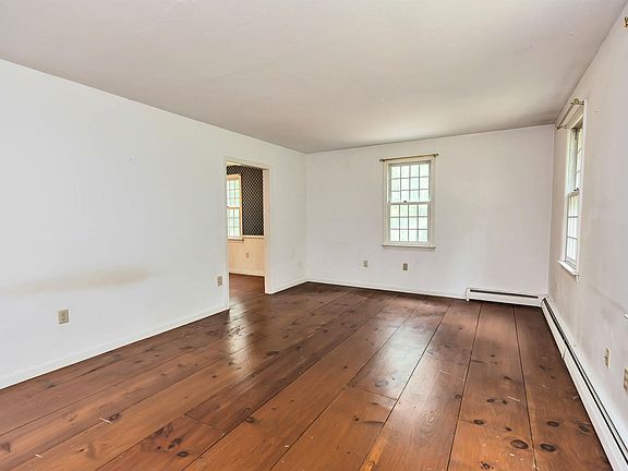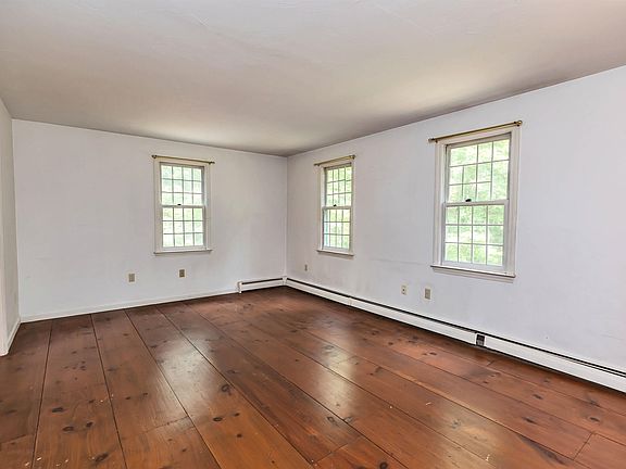 Spacious 4-bedroom colonial in a fantastic neighborhood. Wide pine floors on the first and second floor. Great room sizes. Eat-in kitchen with solid wood cabinets and open to the family room that has a fireplace and newer wood stove. Dining room is right off the kitchen (wallpaper is being removed and it's being painted). Large living room. Half bathroom on the first floor. Primary Bedroom with wood fireplace, huge walk-in closet and en-suite bathroom. 3 more bedrooms and a full bathroom are on this level. Second floor laundry. Walk up to the third floor bonus room – great for a home office or recreation room. Screen Porch. 2 car garage. Set on a private lot. With some personal touches this home could be magnificent. Here is your chance to get in to Bedford and build some equity!