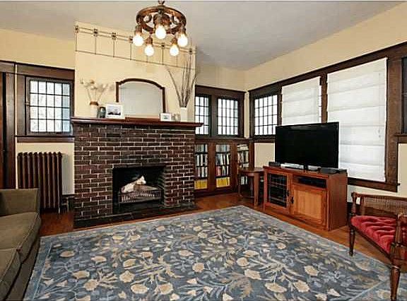 "Arts & Crafts" style bungalow with remarkable architectural details. Built circa 1910. ENORMOUS rooms. Open, spacious layout! Chestnut trim. Bay windows. Bulit-in bookcases. Window seat. Decorative brick fireplace. Box beamed ceiling. WONDERFUL fully renovated eat-in Kitchen with accent soap stone counters. Spacious renovated full bathroom plus a NEW powder room. Large bedrooms! Big open front porch PLUS a charming back porch. Newer boiler. Updated electrical. This home is an absolute pleasure for anyone who appreciates a beautifully restored/renovated early 20th Century bungalow!