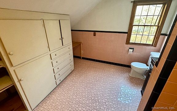 Classic vintage tileOriginal woodworkFarmhouse-style stone sinkRustic new england charmQuiet private country propertyHandcrafted cabinetryBuilt-ins for storage