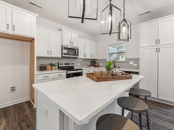 NEW! Wade 3BR / 2.5 BA with Primary on Main features 2,054 square feet of open living. First floor boasts laundry room, great room overlooking dining room and kitchen. Home features rear screened porch, perfect for entertaining. Kitchen upgrades include quartz counters, tile backsplash, cabinetry, and SS appliances. Second level features spacious secondary bedrooms, additional full bath, and loft area. 2-car garage also includes 6x16 side bump for extra storage. Tanglewood is a bike ride away to Jack Marley Park and downtown Angier with super cute shops and restaurants.