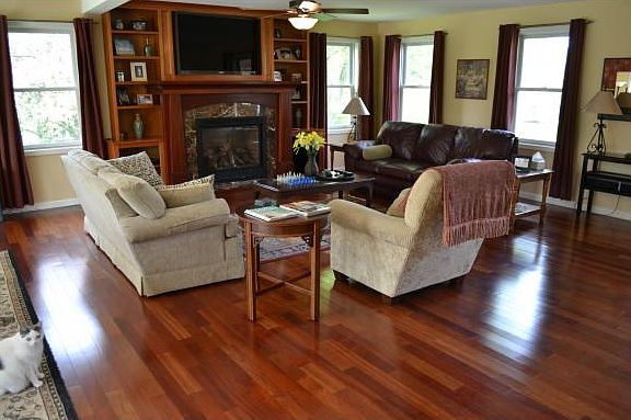 This house lives well! Huge custom kitchen flows naturally into large great room. Tons of windows. Perfect for family living & entertaining. Brazilian cherry floors & gorgeous cherry/marble gas FP with built ins. Over-sized cumaru wood deck & large yard for fun-filled summer barbecues. First floor den could be 4th bedroom. Master suite with wall of windows overlooking yard, private bath & hide-a-way study. Two add'l BRs up share add'l full bath. Open partially finished basement awaits your personal touch. Quiet neighborhood close to Cornell Technology Park. Must see!