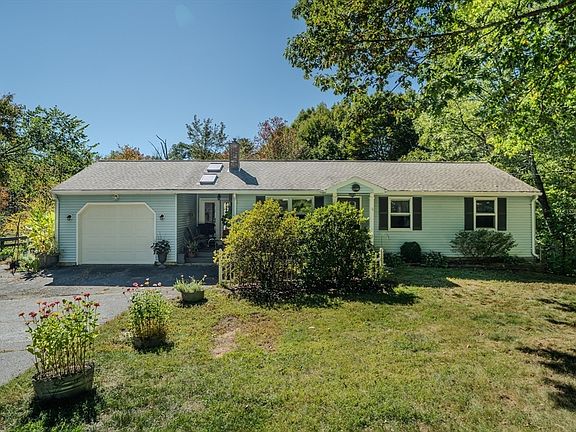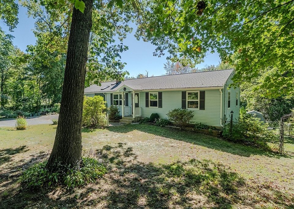 Looking for single level living AND a walk to the center of town? If so, you'll be delighted to find this move-in ready ranch! The lovely covered porch leads you into a convenient mudroom and an updated kitchen w/ beautiful granite countertops, newer SS appliances and modern luxury vinyl plank flooring. The 3 season sunroom offers amazing views of the wooded wetland behind the house, perfect for bird watching and enjoying nature, and leads to a private deck and the fenced backyard. A large living room, full bath w/ newer tile floors, and 3 bedrooms, all with closets, round out the main level. The lower walkout level features a large family room with new flooring and fresh paint, a 1/2 bath, bedroom 4 and the laundry area. New heat pump forced hot air heating and cooling on the main level was just installed in 2023! The fenced yard is a gardener's delight. This home is much larger than it looks, is less than 1 mile to several of the local schools, and has town water & sewer!