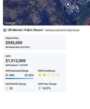 Zestimate is incorrect. Was based on 1 bedroom, 1 bath 750 sq ft. An AVM (Automated Valuation Model) was computer-generated and a value of $1.912 M was calculated (without furniture) for the property based on a statistical analysis of real estate data, including comparable sales and property characteristics.