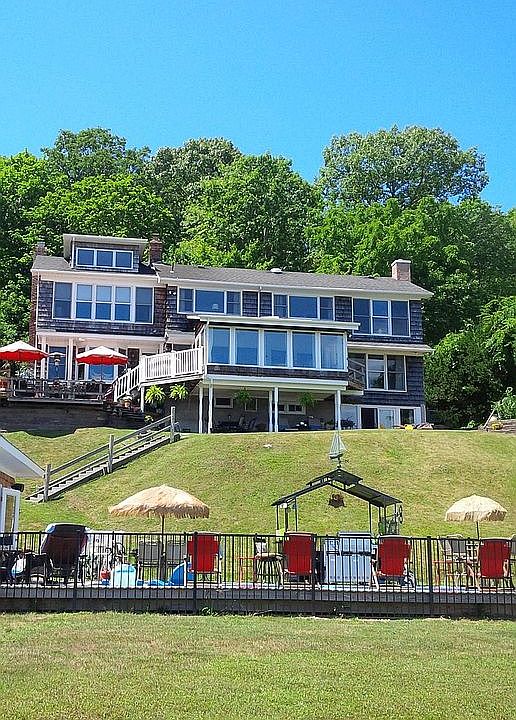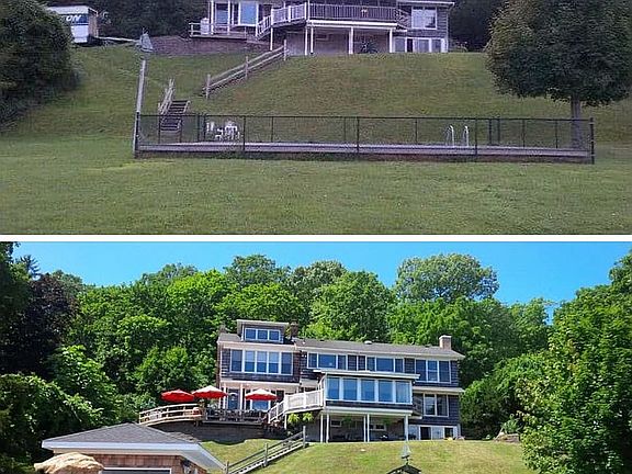 Completely remodeled with hardwood floors throughout, heated floors in kitchen and Florida room, 2 Heatilator fireplaces, large 13' x 8' walk in master bedroom closet, (2) air baths, In law suite in basement along w/gym (750 sq ft not included in total sq ft), salt water pool, waterfront, cabana with full kitchen, 7 zone wifi programmable sprinkler system and Harborfield's school district.