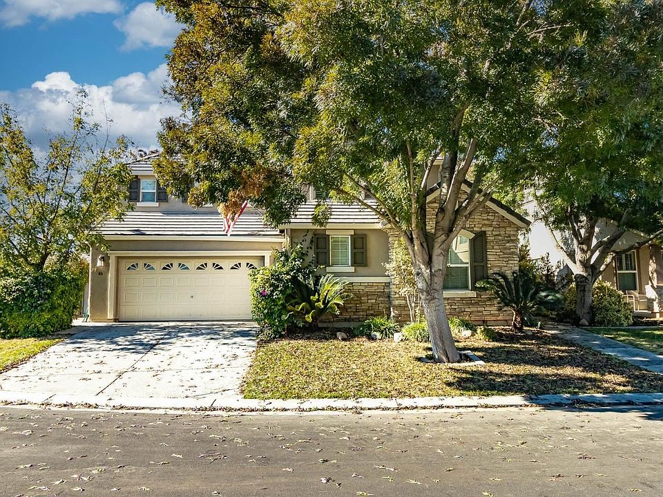 Beautiful home with an amazing view of lake featuring 5 bedrooms, 3.5 bathrooms, 3040sf, with extensive amenities which include hardwood floors, carpet in both lofts & stairs, faux wood beam in Living room with built in cupboard for wires, black wrought iron on stair railings, master bedroom downstairs with large shower in bathroom and a jr suite upstairs and walk in closets in 3 other bedrooms. Plantation shutters throughout, 2 lofts, 3 car garage, intercom and water softener. The lot is amazing with lake access, a dock and a walking/sitting area at bottom of lot by the lake, playhouse with a loft stays, planter boxes, covered patio and much, much more.