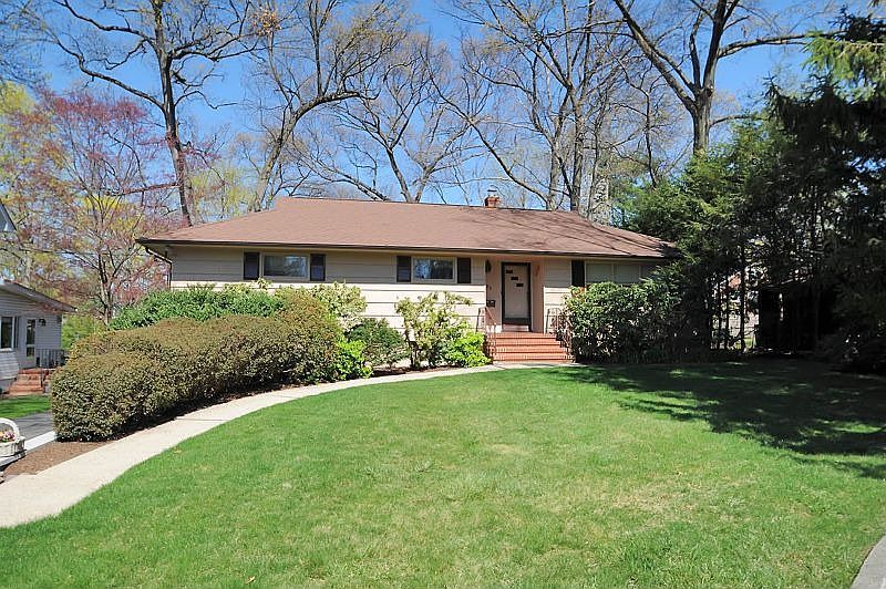 This stunning home has been expanded in the rear of the house. What a surprise when you see this magnificent ranch home, nestled on park like property 70x200,simply superb. The updated MEIK/Da/Tray ceiling is beautiful with lots of natural light. The updated fabulous family rm/gas fpl/cath will please everyone with sgd to a deck overlooking magnificent grounds. Full fin lower level/rec rm/office/lndry rm/walk out to the rear/a big 2 car garage the two beautiful updated full baths are tastefully done. Underground sprinklers and so much more. Not to miss this one!! Much Much bigger than it appears,cul de sac location. walk to school,shopping,and NYC transportation