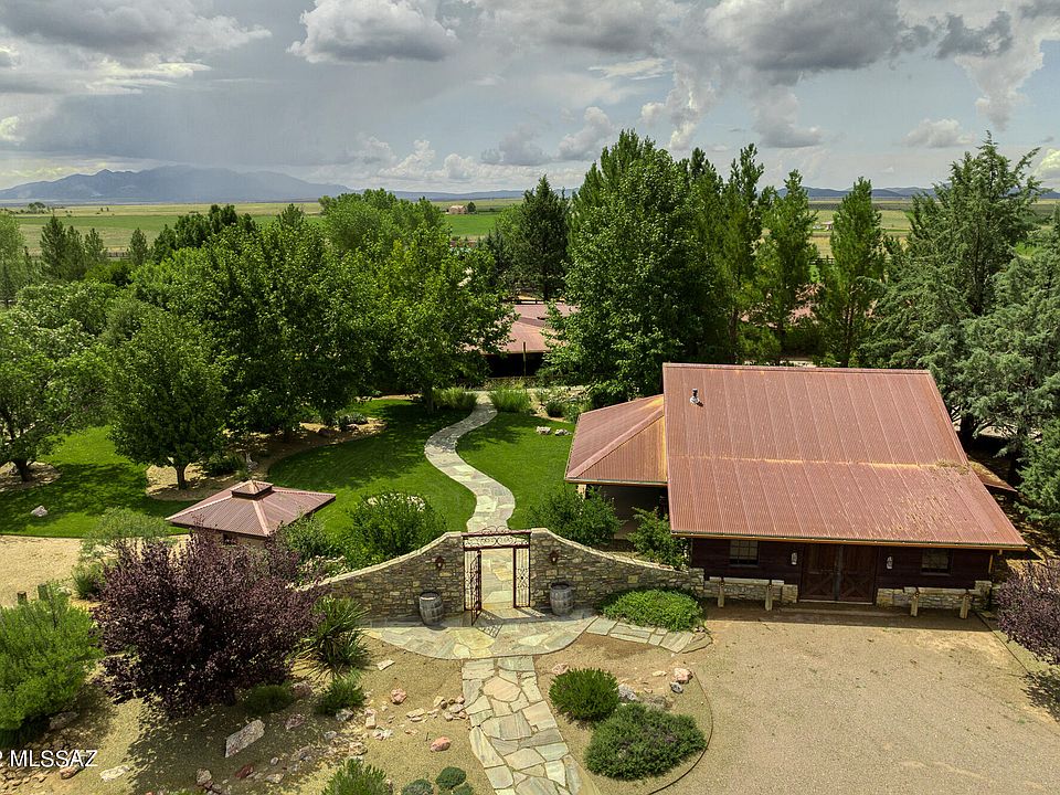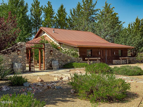 Over 50 acres fenced in horse property has a total of 12,000 square feet of buildings. No expenses were spared in creating this majestic ranch in the heart of of Southern Arizona Wine Country. The Custom-Built has 3 bedrooms, 3 baths, 2 Master Suites, dining area, Living Room, Family Room, spacious laundry room Huge L shaped Arizona room attached to home. Enjoy the surroundings on one of 5 separate porches. Property boast several detached buildings, Garages for 4 vehicles and 3 covered, circular driveway, Studio, Gym, 1,550 sq. foot Workshop with car lift. Equestrian area with 5 horse corrals, 4 horse stalls, 2 tack rooms and covered horse wash area. This ranch property has endless possibilities for a winery, Bed and Breakfast or a wedding venue. YOU TUBE: 45 Iron Horse Ranch. Tax parcel ID #'s that are attached to the sale of this property.