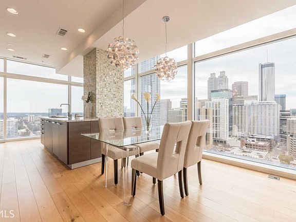 This exceptional condo w/over $150,000 in upgrades is a combination of grand space, incredible light, dramatic views & excellence in design. Elegance abounds with the EXTRAORDINARY CUSTOM Mother of Pearl tiles, venetian plaster, high-end automated shades, lighting & fans. Unit has custom built storage in all bathrooms & closets. Professional chefs kitchen boasts European appliances. 180 degree skyline views & open floor plan on the 25th floor makes this an entertainers dream! The W Residences are known for their white glove amenities including 24hr hotel services, valet parking, concierge, pool, spa, gym & helipad. Walk to everything Midtown/Downtown, MARTA, Centennial Olympic Pk. Easy on/off access to freeways.