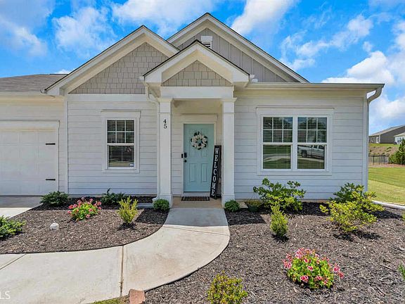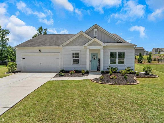 Welcome home to this stepless, Craftman style RANCH. This home is move-in ready! Enter to beautiful hardwood flooring and directly access a flex space that could be used as a HOME OFFICE or sitting room. The main living area is OPEN CONCEPT. The large GREAT ROOM houses the family room, dining room, and kitchen. Gorgeous Kitchen offers dark stained cabinets, GRANITE countertops, large ISLAND with BREAKFAST BAR, and STAINLESS STEEL APPLIANCES. It is open to a spacious EAT-IN DINING ROOM as well as Family Room. This Great Room also offers access to the REAR PATIO.-the perfect set up for entertaining with a back yard FIRE PIT! SPACIOUS MASTER with incredible shower! SPLIT BEDROOM PLAN with two additional bedrooms. The community offers incredible amenities such as swimming pool, tennis, sand volleyball court, basketball court, riverwalk, and large open play space. Easy access to GA-316 as well as restaurants, shopping, and parks.