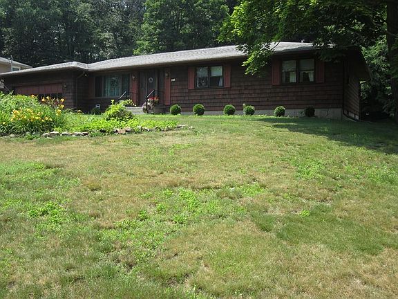 Location Location!!! This sprawling ranch has lots of room to entertain... Natural gas heat and central air, architectural roof, beautiful back yard abutting miles of woods and mountains , Loads of Boise-Cascade cabinets and storage, master bedroom with private bathroom shower remodeled in 2023, newer bay window in living room, fireplace in family room and a large basement if your looking to expand. New HVAC and Water Heater. Some fresh paint and flooring will build instant equity in the executive ranch!