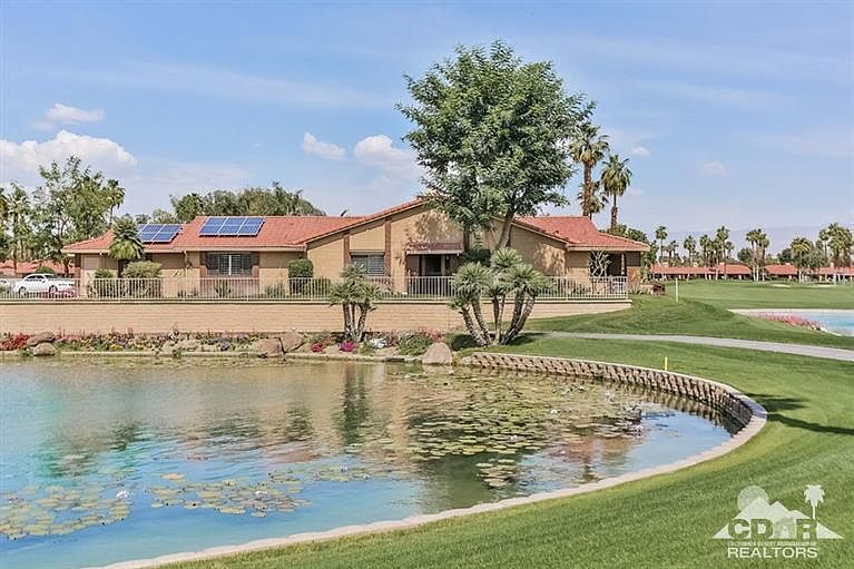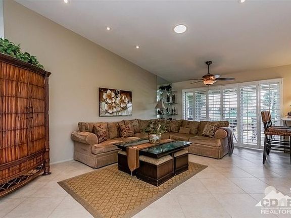 Location and Views that are hard to beat! This 3BR / 2BA Chaparral CC Condo has lake, golf course, club house and mountain views to the south and east. The updated home is in a prime view location. Spacious and open floor plan includes foyer, living room with soaring vaulted ceilings & a custom finished tile fireplace,formal dining room with built in shelves, and updated kitchen which has been opened up with a two sided counter. There are two generous master suites each with their own bathroom. The power/ guest bathroom has been completely remodeled. The third bedroom has been converted into a den/office with an efficient built-in work station. Chaparral CC offers a wide array of amenities including golf, tennis, a clubhouse, community pools/ spas and a new fitness center. The challenging executive golf course designed by Ted Robinson features 13 lakes and 45 bunkers. Chaparral CC has a 24/ 7 guard gated security entrance. Prime Palm Desert location; Close to everything.
