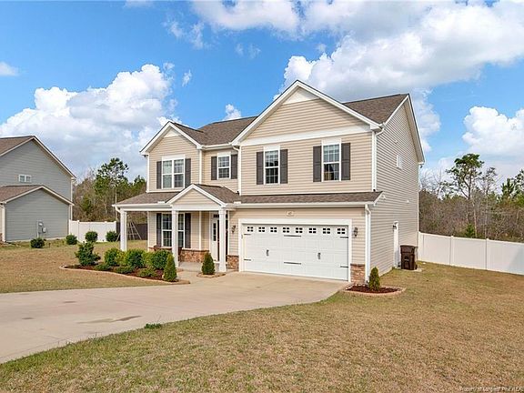 Awesome home laminate flooring in foyer formal dining room kitchen and nook carpet in study, great room with fireplace, large kitchen with island, stainless steel appliances, fridge, granite countertops ceramic tile back splash, pantry. 4 bedrooms 2 1/2 bath, large master garden tub, sep shower, double vanity, his and her WIC, laundry room. Covered rear porch, privacy fence backs up to trees for privacy, great home for family!