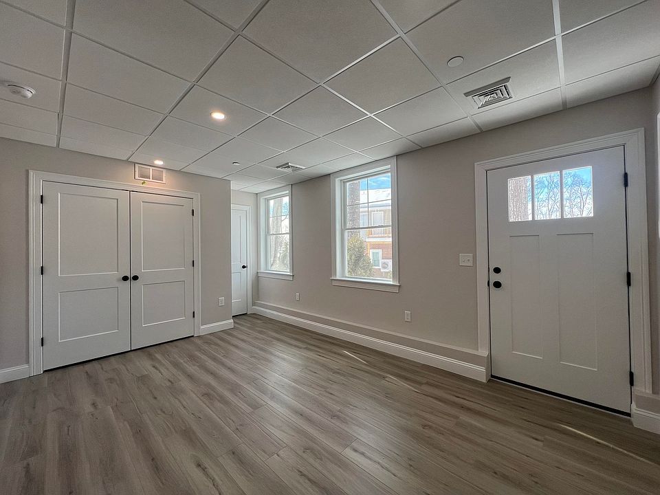 NEW CONSTRUCTION! This unit in Building 7 is located in the back of the Juniper Commons community, and includes upgraded features! Open flow living space is complete with high ceilings, hardwood flooring, custom trim work, and plenty of natural light. The living room leads onto the deck, which offers views of the wooded open space and easy access to the community trail. The upgraded kitchens feature cabinets to the ceiling, large island, bar with pantry cabinet, and quartz countertops. The third floor has three bedrooms, with a primary suite including walk-in closet and private bath with tile shower. Hardwood flooring throughout all bedrooms, living area, and stairs. Two car garage. Central air. Professionally landscaped community with community park, sidewalks, and trail leading into the lush open space. Enjoy low maintenance living in a great Portsmouth location!