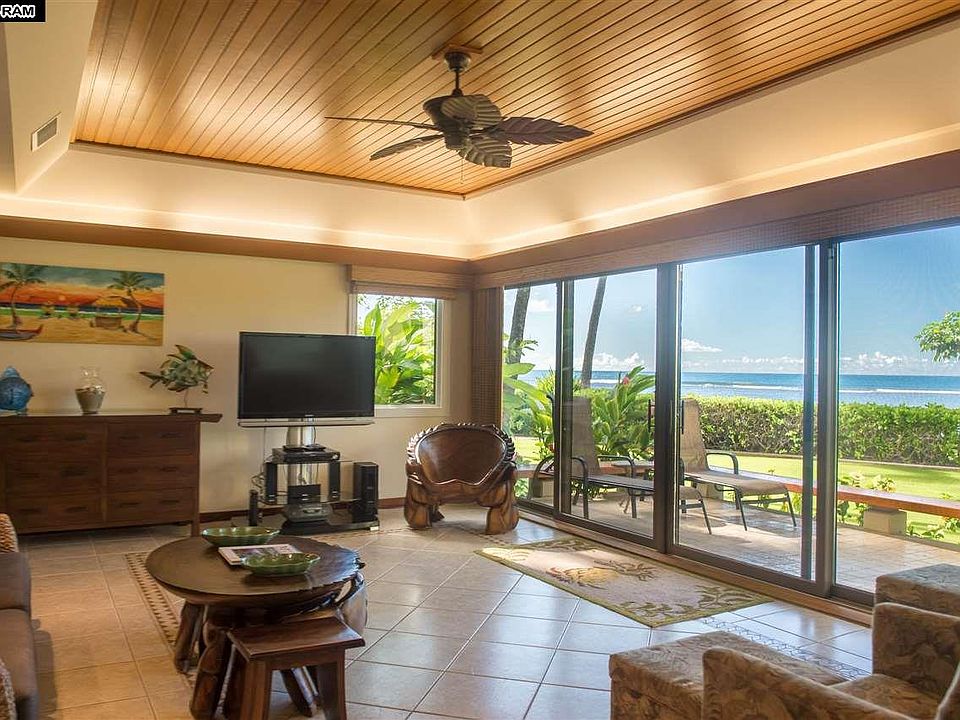 Very rare offering. Privacy & Exclusivity set the tone from this one-of-a-kind, 10-unit direct oceanfront condominium complex located on Lahaina's Baby Beach in West Maui. Expect a very quaint, low key, atmosphere with immaculate grounds, resort-esque amenities, and within steps to the sand and water's edge. Unit #103 is a spacious 2-bedroom 1st floor, corner unit...ahead of it's time when built. Featuring an open layout, oceanfront master suite, large bedrooms, interior perimeter lighting, custom KOA cabinetry/accents, wet bar, laundry room, garage included...A timeless classic with beachfront access, yet intimate, private seclusion. In a busy vacation rental program. Sold furnished as shown, excluding selected artwork. Completely turnkey. For future booking & property reviews, see VRBO #377643. 3-D walk through video is a must see.
