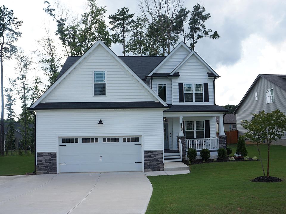 WOW! This beautiful Ashmere Plan features open concept and first floor master BR. Whole house google, blower on fireplace with beautiful surround, ceiling fans, and great view of landscaped back yard. Eat-in kitchen will accomodate table for six easily. In kitchen there is a lighted walk-in pantry and large island. Dining room has coffered ceiling and can be used as a flex room.Open closet doors and lights come on. Master BR contains garden tub and separate shower. Barn doors covers entrance to master bath. Upstairs landing large enough for desk. Two large bedrooms with walk-in closet and Jack & Jill bath, each BR has walk-in closet. Very nice family room upstairs with ceiling fan. Screens on all windows. Large screened porch overlooks beautifully landscaped yard and stone patio. This one is move-in ready and a must-see. Community pool and club house just steps away.