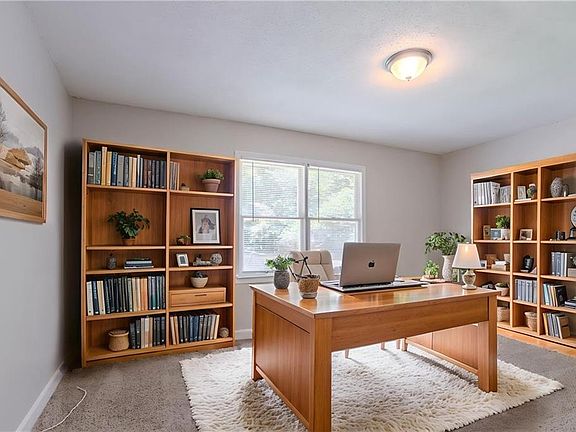 Rear deckWooded edgesLarge lotOpen-concept kitchenEat-in areaSolid surface countersSpacious laundry