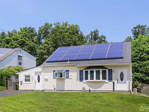 The search stops here! 4 bedroom cape backing to private wooded area. Huge yard. Perfect starter house! Enclosed patio area for great outdoor entertainment. Two first floor master bedrooms! Full bath on first level! Formal dining room with Pergo floors. Semi-updated kitchen with newer cabinets. Two nice sized bedrooms upstairs with a private full bath. The property has a mini-split system for A/C. Private driveway. Solar panels are leased, great savings on your bills! Minutes from NYC bus, shopping, restaurants, and all major highways. This is a must-see. Bring your imagination!