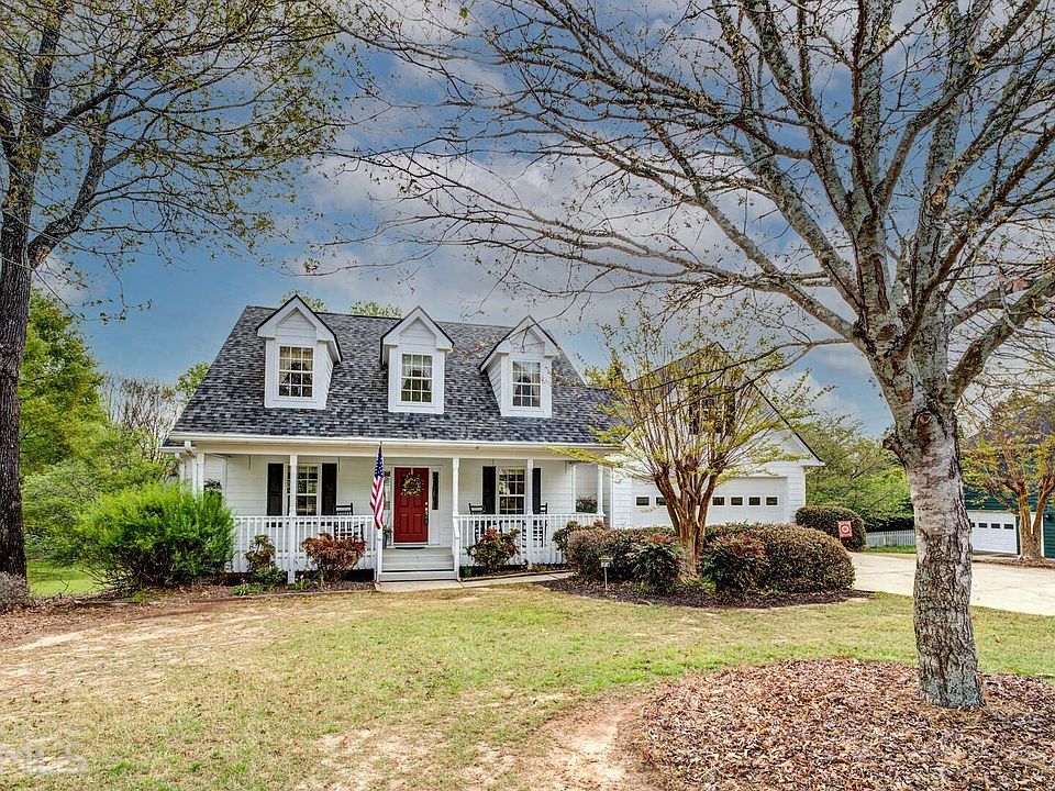 Charming Cape Cod Ranch Located in Desirable Woods Of Dearing Community. 3 bed/ 2 bath with large bonus room on half acre lot. Rocking chair front porch leads to two story foyer adjoining a formal dining room. The Large vaulted family room has a wood burning fireplace as the focal point, with views to a serene backyard with large deck. Off the living area is a semi open concept kitchen with white cabinets, all new stainless appliances, breakfast nook, breakfast bar, and pantry. Split bedroom plan has master off kitchen, and two additional bedrooms with full bath off the family room. The oversized master has a walk in closet and a completely renovated master bath. Upstairs you will find a large bonus room perfect for a 4th bedroom or flex space. Well maintained- HVAC recently serviced, new roof in 2020, termite system, new hot water heater in 2021. Schedule Through ShowingTime. See Remarks.
