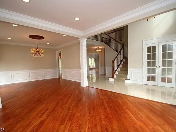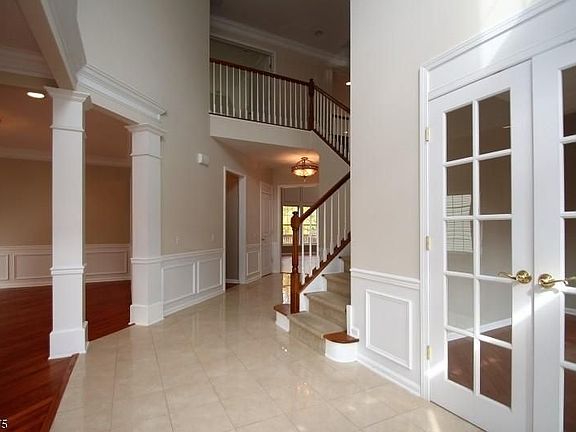 Large Center Hall Colonial featuring 2 story entry foyer, Formal LR & Formal Dr w/wood floors, Office/Den off foyer with French doors and hardwood floors, Oversized Kitchen w/large center island, breakfast bar, granite counters, stainless appliances, tile floor, sunny and bright breakfast area w/door to deck, 2 story Great Room w/gas fireplace, wood floors make up the 1st floor. Master BR w/tray ceiling, carpet, oversized master bath, 2 bedrooms w/jack & jill bathroom & walkin closet, BR w/walkin closet and full bath. All rooms have hi hat lighting, 2nd floor Laundry Room w/sink. Full Walkout finished basement w/media/rec room, full bath, large windows overlooking paver patio and sliders to patio. Storage area. Crown molding and shadow boxes in many rooms, too much to list! 24 hr security guard & more.