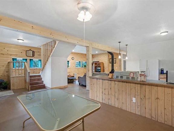 5 acres with a completely remodeled 3 bedroom 2 bathroom home. In the updated kitchen is gorgeous tongue and groove and custom cabinets. Master bedroom upstairs complete with a soaking tub and walk-in closet, large enough to add a spacious walk-in shower. Stay cozy during the winter with the electric heat and wood fireplace. This open floor concept is perfect for entertaining your guests. use the lien-to as is or build your own spacious shop for your toys! The options are endless on this beautiful acreage and it's like nothing you've ever seen before.