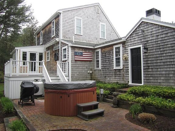 Charming New England Cape style home in perfect condition.Many upgrades to include hardwood floors,vaulted ceiling family room with rustic wood beams and oversized fireplace.The designer kitchen has upgraded cabinets,custom hardware,solid granite counters & open shelving to display your favorite pottery.Attached dining room with beadboard trim is open to the den which has a beautiful electric fireplace to add warmth.The living room is spectacular with the custom checker board floor,matching fireplace and open balcony to the second floor.Other upgrades include irrigation,water treatment system,whole house humidifier,C/A,central vac & 1st floor laundry. Oversized deck with awning overlooks the professionally landscaped yard,stone walls and patio with hot tub and shed.Perfectly located close to the new YMCA and easy access to rt 3 and 495.Make your appointment to see this gorgeous home,it will not last at this price.New 3 bedroom Septic being installed.