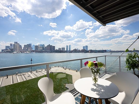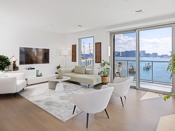 Spectacular front nose residence at Slip 45- East Boston's premier full service building! Enjoy water & city views from every room in this one-of-a-kind home located in the most desirable stack. Step into the open modern living/dining room with floor to ceiling windows overlooking the ocean and Boston's skyline. This magnificent home features top of the line Bosch appliances, quartz countertops, sleek white cabinets and custom pantry & closets. Step outside onto your private deck for a cup of coffee or a glass of wine while enjoying the unbeatable city & harbor views. The main bedroom accommodates a king size bed featuring a walk-in closet, double vanity bathroom & glass shower. The second bedroom is generous size & it is located on the other side of the home which gives a nice separation of space. This world class development features a state-of-the-art gym with water views, club room, concierge, bike room, private lounge with high end kitchen, movie theater & outdoor grilling area.