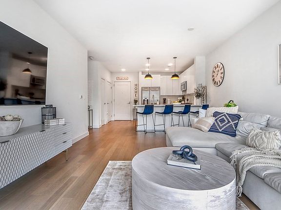 Welcome to your new waterfront life located in East Boston's premier full-service, luxury building, Slip45. This light-filled, airy, and open one-bedroom is as pristine as the day it was first built. The chef's kitchen is well equipped with Bosch stainless, bar seating for 4, designer pendant lighting, soft closing features, and quartz countertops. The balcony off the living room has immaculate views of the Harbor and is the perfect spot to enjoy the ocean breezes. The dual-vanity bathroom has been upgraded with shiplap and designer fixtures. Automation and AI abound including lights, thermostat, and motorized shades in the LR and BR. 24/7 concierge, access to multiple lounges, grills, common kitchen, bike storage, fitness center, pet spa, and 2 new restaurants coming in 2023. All with the most incredible views of the City just outside your door. The location is a commuter's dream; Maverick Square T at your back door and Ferry to the Seaport or Long Wharf at your front door.