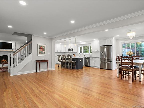Beautifully renovated Center Hall Colonial with an open floor plan conveniently located in the Stratfield section of Fairfield. This pristine home has been completely renovated with attention to detail throughout. Renovations include kitchen, bathrooms, upgraded electrical and plumbing systems, new dual-zoned HVAC, new oil tank and roof. Recently landscaped and painted inside and out, this 4-bedroom home features a master bedroom en-suite with a walk-in closet and a master bath with large walk-in shower and quartz counter top, 3 additional, generously sized bedrooms with center hall bathroom. (Stackable washer/dryer can be installed in hall bath closet.) Beautifully redone hardwood floors throughout the house. Pull-down attic access for additional storage. An oversized 2-car, 2-story garage allows easy access to the mudroom. Enjoy entertaining family and friends in this bright, airy kitchen with new hardwood flooring, a large center island, quartz countertops, and all new appliances. Continue the party outside to the oversized deck just steps from the kitchen. Take the chill off those cold winter days by relaxing by a fire in the family room. Just off the kitchen is a beautifully renovated powder room with shiplap walls and quartz countertop. Walk to elementary and high schoolsonly a short drive to the middle school. This house is a must see for the family that wants to move right in!