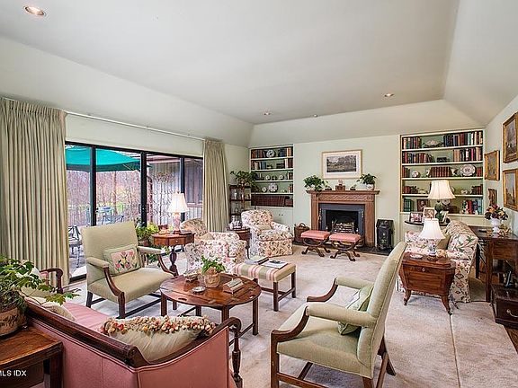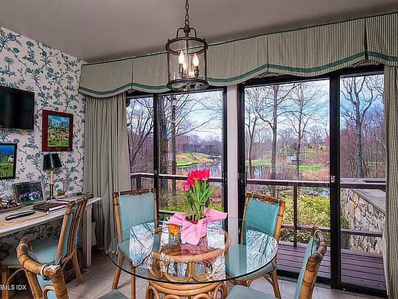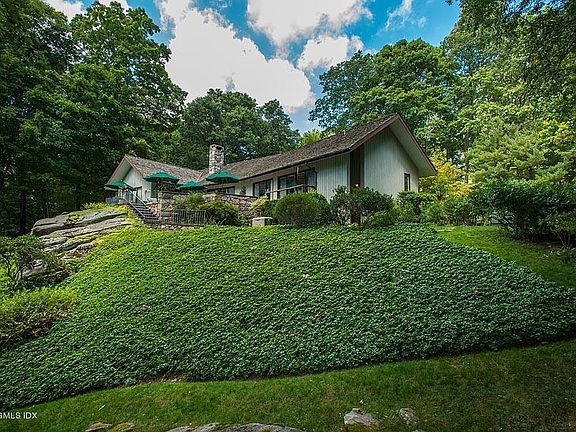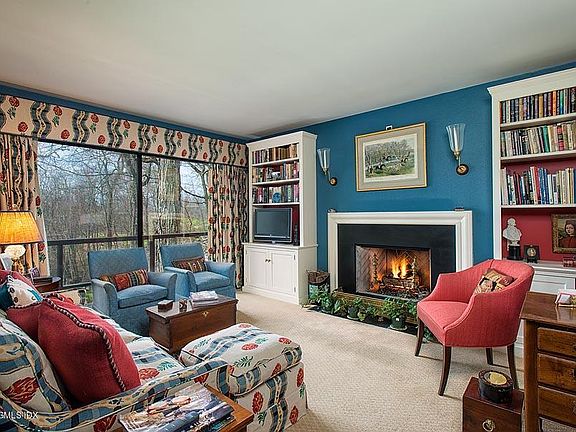 ROUND HILL IN MID-COUNTRY SPECTACULAR LAKE VIEWS TO THE WEST AND SOUTHWEST OF SCENIC ROUND HILL CLUB GOLF COURSE IN DISTANCE WITH BEAUTIFUL SUNSETS FROM THIS WONDERFULLY PRIVATE HILLTOP NEAR END OF QUIET LANE WITH WALKING AND BICYCLING FROM FRONT DOOR. LUXURIOUS ONE FLOOR LIVING. GRACIOUS, TRADITIONAL LIVING ROOM AND DINING ROOM OPEN TO EXPANSIVE FLAGSTONE TERRACE. LIBRARY COULD BE SECOND MASTER. STAIRCASE UP TO AREA DESIGNED TO BECOME AN ADDITIONAL BEDROOM AND BATH.