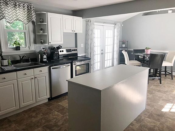- Kit Dscrp: Main Level, Dining Area, Deck - Exterior, Kitchen Island, Stainless Steel Appliances, Open Floor Plan, Recessed Lighting, Flooring - Laminate, Remodeled, Exterior Access, Paints & Finishes - Low Voc, Chair Rail