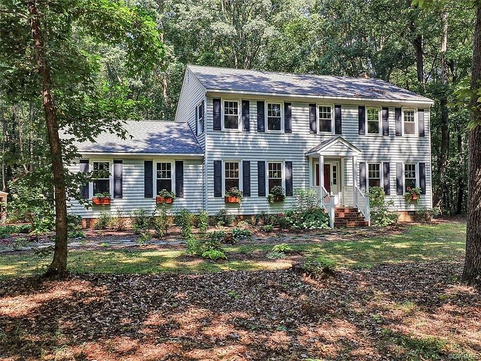 This stunning Wingmead colonial combines quiet Goochland living with the convenience of the west end located only 11 minutes from Short Pump Town Center/Innsbrook and a short walk to the Centerville Food Lion. Enjoy the private wooded lot with a lush garden that backs up to Sycamore Creek Golf Course. Outside features all new landscaping and a huge deck for entertaining. As you step into the home you are greeted off the foyer by the living room with barn doors and shiplap wall straight out of HGTV. The kitchen was recently renovated and opened into the dining room with a high end renovation including custom cabinets, stainless appliances and stainless wall mounted range hood with back splash and wall tile, farm sink, soft-close drawers, huge picture window, and granite counter tops. Step into the open family room/Florida room to be greeted by hardwood floors, built-in bookcases and a painted brick fireplace as it flows into the Florida Room with a wall of windows. Upstairs your comfortable en suite with updated master bath include solid surface shower, tile planks, and granite vanity. Two additional bedrooms and an additional office/study/bedroom with an updated full bath await.