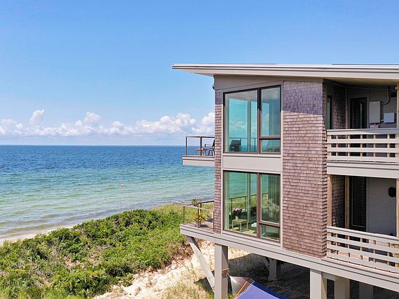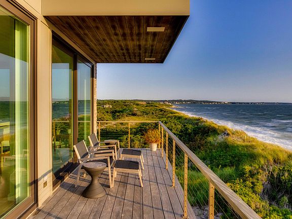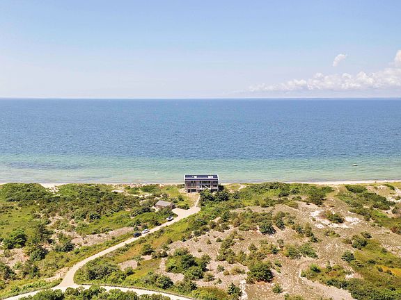 Discover 45 Little Neck Bars Road in West Falmouth, an extraordinary oceanfront residence that exemplifies the exceptional creations of award-winning Neubauer Ennis Architects, who were recently recognized by Forbes on their 2024 inaugural list of 'America's Top 200 Residential Architects' for this property's design. As an oceanfront oasis nestled in the dunes of Black Beach and facing due west with spectacular sunset views over Buzzards Bay, this magnificent property invites you to experience coastal living at its finest. With unrivaled luxury, breathtaking 360-degree views, and over 900 feet of private sandy beach, prepare to be captivated. Step into a world of refined elegance as you enter this coastal masterpiece designed by renowned architect Jill Neubauer. The site and its unique proximity to the beach required a top-notch architect working closely with a skilled engineer to create intelligent living spaces incorporated into the beautiful surroundings which are the hallmarks of this stunning oceanfront property. Lose yourself in the beauty of the spacious living areas, where natural light dances through floor-to-ceiling windows, creating an ambiance of serenity and tranquility. Indulge in the ultimate culinary experience in the gourmet kitchen, equipped with top-of-the-line appliances and a generous island perfect for entertaining guests. The adjoining dining area boasts panoramic views of the sparkling ocean, providing the perfect backdrop for unforgettable meals. The great room, screened porch and multiple decks on both sides of the property, embrace the views with expansive windows and glass doors throughout. Escape to the peaceful primary suite, with a balcony overlooking the water, and wake up to the gentle sound of waves crashing against the shore and savor the breathtaking views. Three additional bedrooms, along with a bunkroom, offer water views and provide ample room for family and guests. The ground level of the home features an expansive mudroom, ample storage areas, outdoor shower and an elevator from this level to the first and second floors. This peaceful retreat found in the village of West Falmouth, with over nine acres, offers western exposure with extraordinary sunsets and a spectacular, private white sand beach. A detached garage with ample storage space and exercise room complete the property. There is access to conservation trails, Shining Sea Bikeway, sailing and swimming or walking along one of the most beautiful stretches of sandy beach throughout Cape Cod. This oceanfront estate presents an unparalleled opportunity to live a life of luxury by the sea.