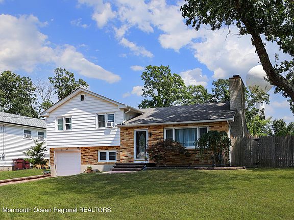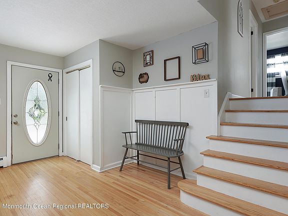 MOVE RIGHT IN to this beautifully updated, spacious home with an open floor plan. Featuring 4 bdrms, 2.5 baths, & hardwood flooring throughout most of the living space. The living room welcomes you with a wood-burning fireplace & convenient coffee station. Enjoy cooking in the eat-in kitchen, complete with white cabinetry, ss appliances, stunning granite countertops, cathedral ceiling, & skylight. The master bedroom, situated on the main level, boasts an en-suite bathroom. Discover 3 more bedrooms & another full bath on the 3rd level. The basement offers ample storage, a cozy family rm, & a versatile rec rm. With its prime location near the GS Pkwy & shopping, this home offers the perfect blend of comfort & convenience