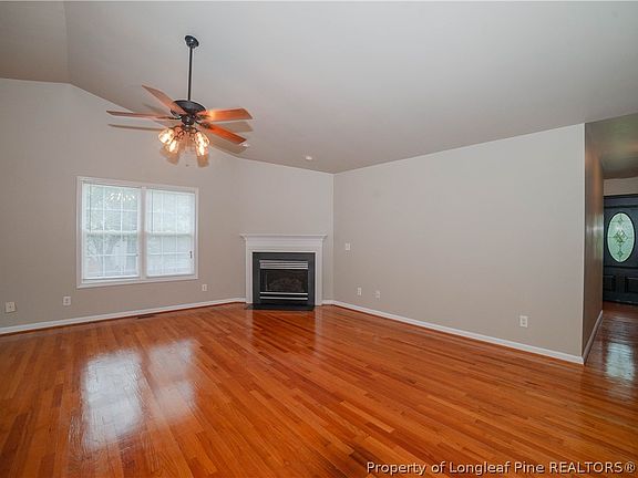 -Carolina Lakes gated community! Boating, skiing, fishing community with Public golf course adjacent to Carolina Lakes. Beautiful brick three bedroom with two baths on wooded lot walking distance to the Lake!! Large vaulted great room with fireplace and hardwoods. Spacious kitchen with lots of counter space! Eat in kitchen with all appliances and pantry. Plus dining area! Split floor plan with a private Primary bedroom and large ensuite bath! New carpet in bedrooms, interior was just painted and new deck! Plus more updates throughout the house! This community also offers a community pool, tennis and basketball courts, nature trail, playgrounds and baseball field! Short drive to Ft. Liberty, restaurant's and shopping! Place this home on your must see list! It will not last long!