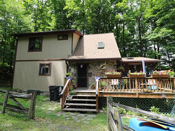 Walk to the lake!! This charming chalet home has lake views, a beautiful lot, and is only about 40 yards to the lake! Featuring 2 bedrooms, 2 full bathrooms, an open floor plan, and a gorgeous screened in porch! All this and its located in the sought after community Paupakan Lake Estates with a beautiful beach, 300 acre lake, play ground and the community is gold cart friendly!