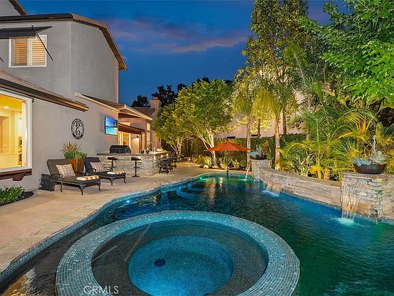 Prepare to be enchanted by 45 Lyra Way. This pristine property, located @ the end of a cul-de-sac in the prestigious guard-gated community of Coto de Caza, offers an unparalleled blend of privacy & luxury. The home features a wrap-around yard & backs to serene open space. The thoughtfully designed floor plan includes a highly desired downstairs bedroom w. an adjacent bath, perfect for guests or a home office. Upstairs, you’ll find 3 more bedrooms, including a luxurious master suite w. a retreat ideal for exercise or a private office. The spectacular kitchen is designed for both functionality & style, w. quartz counters, professional-grade Bosch stainless steel appliances, & a seamless connection to the family room & nook. Multiple French doors lead to the expansive outdoor spaces, where you’ll find a large, covered patio, a built-in BBQ, & a custom Pebble Tech play pool with a swim-up bar, infinity spa, & water features, all maintained by state-of-the-art equipment & technology. The outdoor kitchen is a chef’s dream, equipped with a Lynx grill, fridge, Kohler sink w. hot water, & custom lighting. The covered patio boasts tongue & groove woodwork, a custom metal roof, & copper gutters, providing both beauty & durability. Enjoy outdoor living at its finest with a fire pit, custom stained wood garage door, & meticulously landscaped grounds, complete with drip irrigation & 80 oz “Tiger Turf” synthetic turf. Watch movies, sporting events, & more on the outdoor TV. Inside, the home is bright & airy, w. elegant finishes throughout, including plantation shutters, crown moldings, & custom baseboards. The family room is a cozy retreat w. a mounted TV setup, Sonos sound bar, & a custom built-in bar w. quartz counters & a high-end backsplash. The kitchen also features quartz counters, a large eat-in nook, & top-of-the-line Bosch appliances, making it a true culinary haven. Additional highlights include a generously sized 3-car tandem garage with custom cabinets, epoxy floors, overhead storage, & a mounted TV. The home is equipped w. modern conveniences like a whole house fan, attic fan, newer water heater, & 1 newer heater. The entire upstairs features 9” LVP flooring. Two fireplaces with custom tile & stone surrounds add warmth & charm. Every detail has been meticulously selected & enhanced to offer the ultimate in comfort, convenience, & luxury. Don’t miss this extraordinary opportunity to own a piece of paradise in one of Orange County’s most sought-after enclaves.