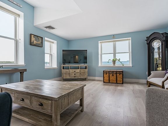 Welcome to the Top Floor! Introducing an exquisite British Landing & Yacht Club corner unit condominium that epitomizes coastal living at its finest. Step into the living room and enjoy the spacious layout that glows with natural light and exceptional water views, this inviting atmosphere is perfect for both relaxation and entertaining. The unit offers two bedrooms, one bathroom, in unit washer/dryer, and many big ticket utility upgrades for your future heating and cooling needs. Outside you can enjoy your deeded boat slip on Wareham River, equipped with tide slides and utilities. Not into boating? Rent the dock to a fellow resident! Residents can enjoy a host of on-site amenities, including a well-equipped gym, a soothing sauna, deeded parking, elevator, waterfront seating, and more. Its prime location near Tobey Hospital, Besse Park, Downtown Wareham, with various shopping/restaurants, and major highways make this condo a convenient location and a valuable investment.