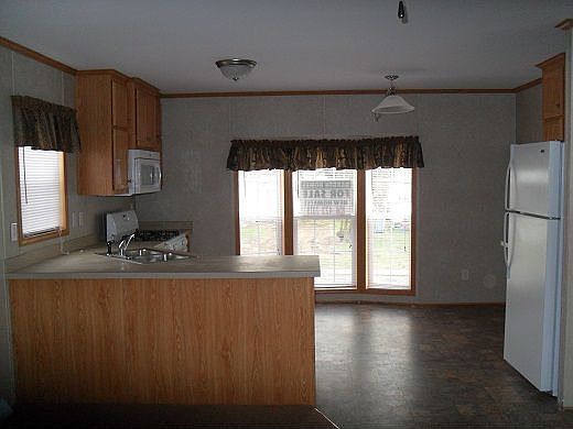 Five years new! Trailer large eat in Kitchen with breakfast bar. Two large bedrooms with central hall laundry and roomy bath. Large master bedroom has walk in closet. Well maintained and ready to move in! Low association monthly rent and well kept park. owner is motivated.