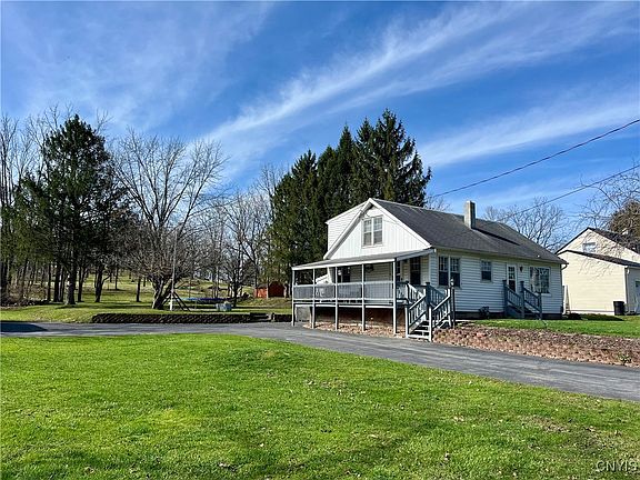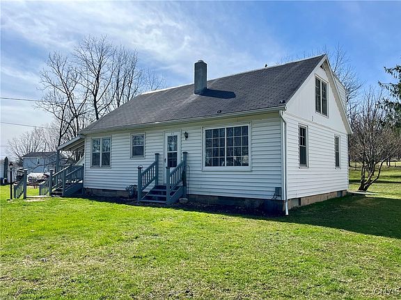 Welcome to 45 Maple Ave, conveniently located within a short walking distance to the Port Byron School District. In just minutes you can reach the towns local market, restaurants like Potters Farm to Fork and just 9 mins from the NYS Thruway making everything you need an easy access. This charming Cape Cod home has so much to offer. Outside you will appreciate the long paved driveway with turn around providing ample parking space. Sizable covered deck with gate for safety overlooking the spacious yard for kids & pets to play and host get-togethers on those nice weather days. Relax and enjoy a quiet evening on the back patio by a warm fire in the outdoor stone fire pit. 2 car detached garage with concrete floor & 220 amp service perfect space for projects and parking your vehicles or toys. Attached to the home is a fully enclosed carport with concrete floor, electricity and bulit in shelving that can also be accessed from the basement. Shed for bonus storage space keeping all your lawn, garden tools and equipment in one separate space. As you enter the home you will enjoy the sizable kitchen wrapping around to the dining room area for a nice flow. Take advantage of the extra deep pantry space which is always appreciated in a kitchen. Generously sized living room with bonus built-in shelving and storage because you can never have enough storage. Upstairs you will find 3 roomy bedrooms with new flooring and well sized closets plus a half bath. Full basement has once been dry locked providing even more useable storage space and a sturdy workbench for those home projects. Basement also has access to the carport leading outside. So much to enjoy with this property and location!!