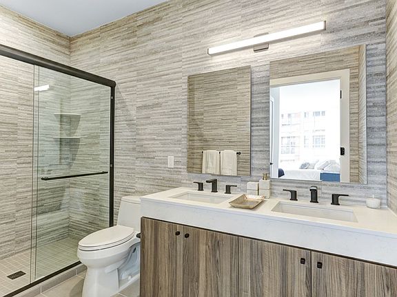 Explore spacious two-bedroom residences equipped with central air conditioning, chic finishes and spa-like bathrooms. Enjoy smart-home technology, in-home washer and dryers, and oversized windows.