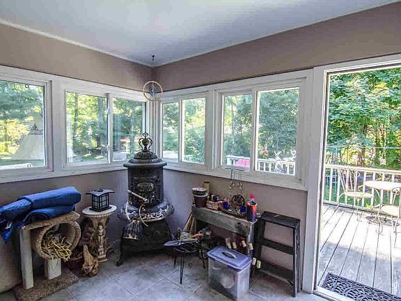 Priced to sell: Unique, ranch with second floor loft. 4 bedroom, 2 bath home with sunken LR w/fireplace, Den, DR, kitchen w/2 ovens & breakfast nook, beautiful hardwood floors on main level, gym, 1 car garage w/door opener, plenty of storage in basement and attic. Enclosed porch w/ceramic tile floors & removable windows for full screens, deck to tranquil back yard w/koi pond surrounded by stone patio. 10 x 10 Amish shed. Corner lot on hill with mature trees provides ample privacy in this quiet neighborhood.