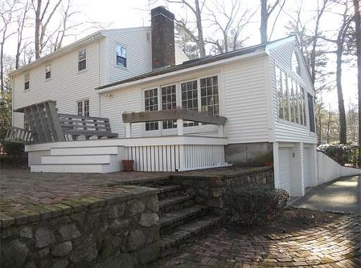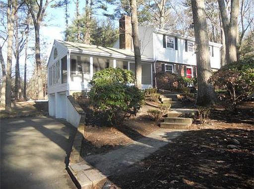 **OPEN HOUSE SUN. 12-2 PM** Nature's beauty embraces the peaceful setting for this Classic Colonial located on a quiet cul-de-sac, yet convenient to all amenities. Original owner has enjoyed the spacious sun-drenched family room surrounded by glass and features cathedral ceiling, Palladium window, fireplace and skylights. French doors lead to sizable deck overlooking private back yard & stone patio; covered screened-in front porch with stone flooring; gleaming hardwood floors; expanded sunken living room; carefree vinyl siding. New septic installed in 2010; 2 car garage; finished lower level. Great value for this well cared for home!