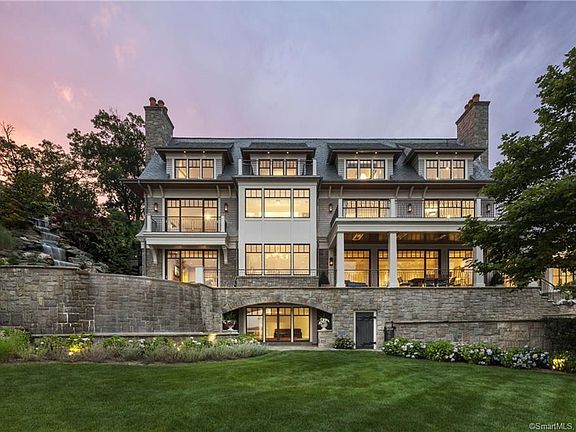 Extraordinary Belle Haven direct waterfront custom built home in Quarry Farm. This recently completed 6-bedroom stone and clapboard home with dramatic water views from four levels of living space is in a class by itself. The home is ideally sited to capture the panoramic vistas of the nearby islands and across Long Island Sound. Absolutely stunning interior design compliments the incredible views throughout the 12,000 square feet of living space. Luxurious design elements abound including; an unparalleled master suite, incredible 3rd floor library den with barrel ceiling, heated covered porch, and a spectacular kitchen, breakfast room, family room combination.